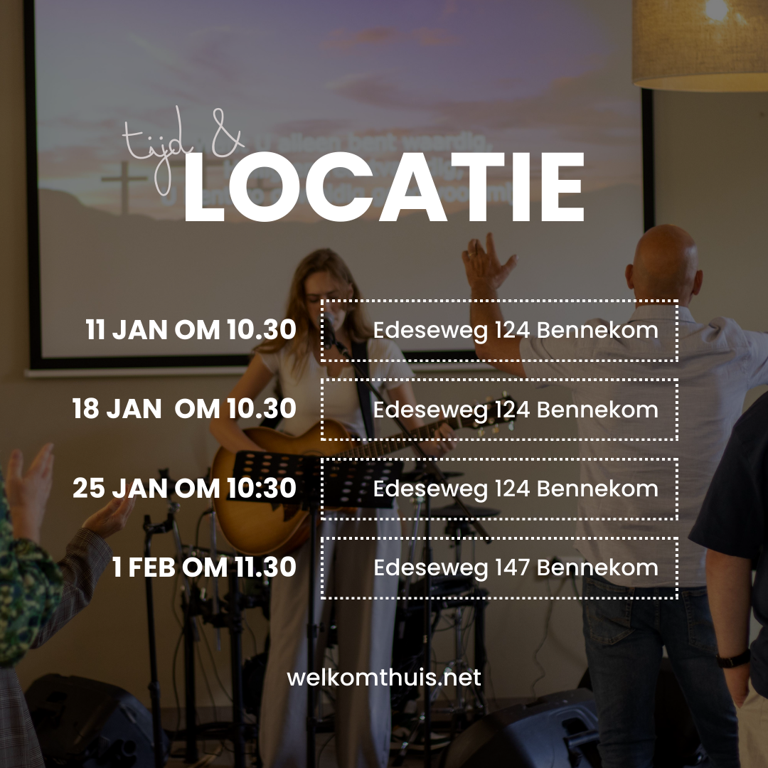 Vanaf 1 februari houden we elke zondag om half 12 dienst in de zaal boven van het VEG-gebouw, Edeseweg 147 in Bennekom.