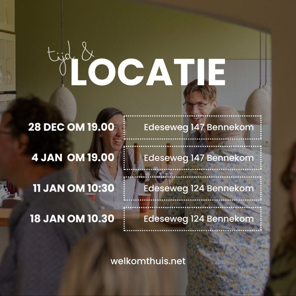 Locaties en tijden voor de komende 4 zondagen Let op: er zijn 2 avonddiensten in het VEG-gebouw. (zaal boven)